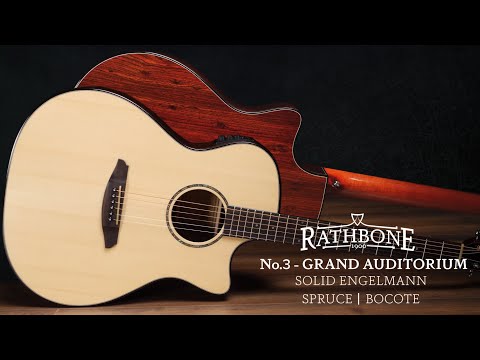 The Grand-Auditorium shape is the natural evolution of the Concert and Auditorium models. Larger in both lower width and overall depth, the Rathbone No.3 Grand-Auditorium is designed to deliver an extra serving of power from every direction.